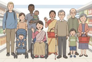 視覚に障がいがある方はもちろん、老眼で小さな文字が読みづらい方、薄暗い場所で商品を手に取る方、ある程度会話はできるけど、文字としての日本語の認識が難しい外国人の方——。