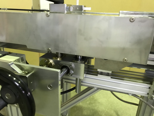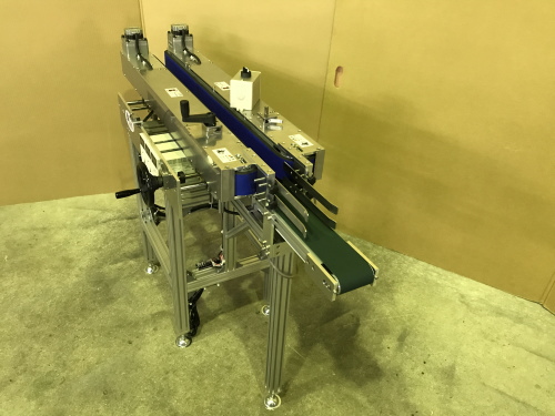 そういった問題を解消するために、ワーク挿入用の平コンベアを一体化させたグリップコンベアを創りました。 それが、これです。 ちなみに、化粧品を製作されている事業所さん向けです。