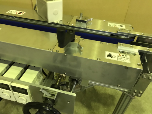 この問題を解消するために、ハンドル操作で高さ位置を変えれるようにしました。 ベルトの高さが調整できることで搬送できる形状にもバリエーションがでるようになりました。 チューブ製品にも対応したいとの要望にもOKです!